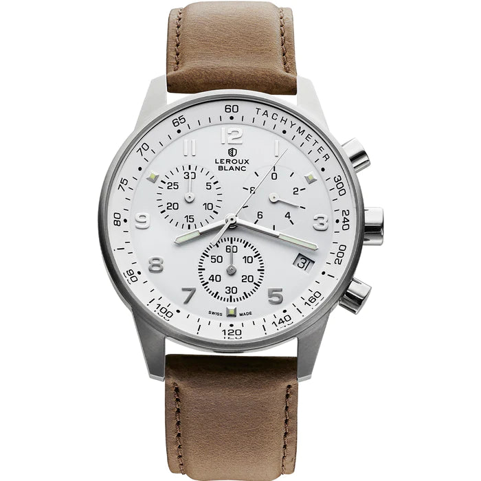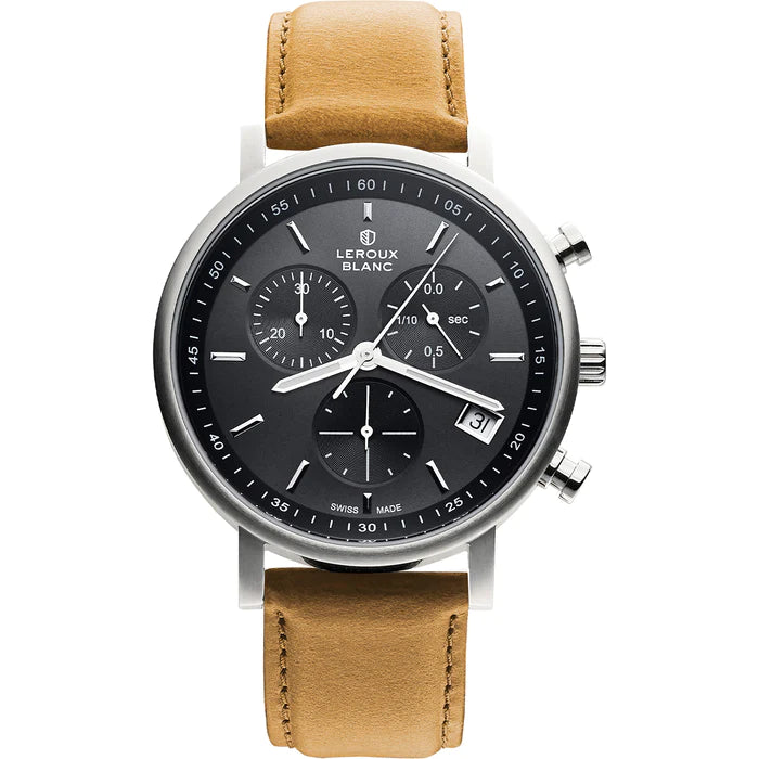 Bei den meisten unserer Leroux Blanc Uhren haben wir uns für Lederarmbänder entschieden. Bei der Auswahl haben wir Wert auf die Haptik gelegt und einfache Ledersorten ausgesucht, die modern, schlicht und elegant aussehen, ohne überladen zu wirken. Alle unsere Lederarmbänder beziehen wir von einem Schweizer Familienunternehmen, das sich auf die Herstellung von qualitativ hochwertigen Uhrenarmbändern spezialisiert hat.